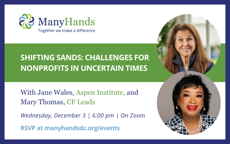 Please email Lori Sostowski at membership@manyhandsdc.org with questions about the event or about becoming a Many Hands member.